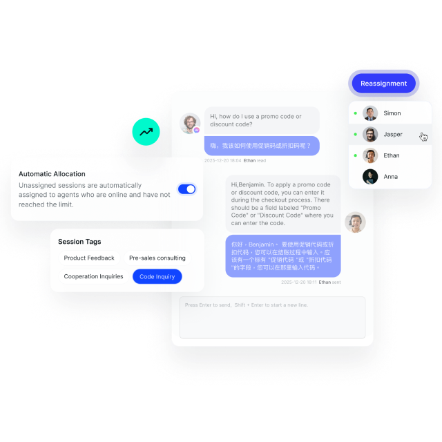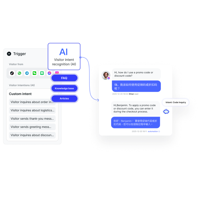 SaleSmartly chatbots recognize customer intent and send instant replies, ensuring timely responses during peak traffic.